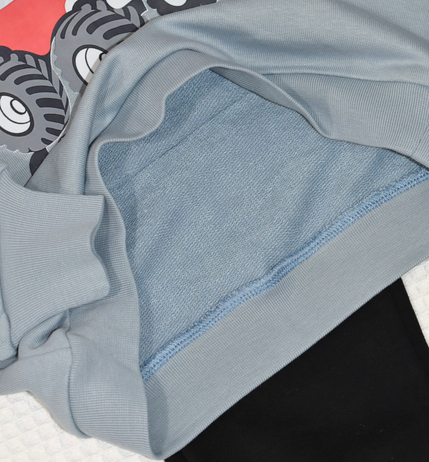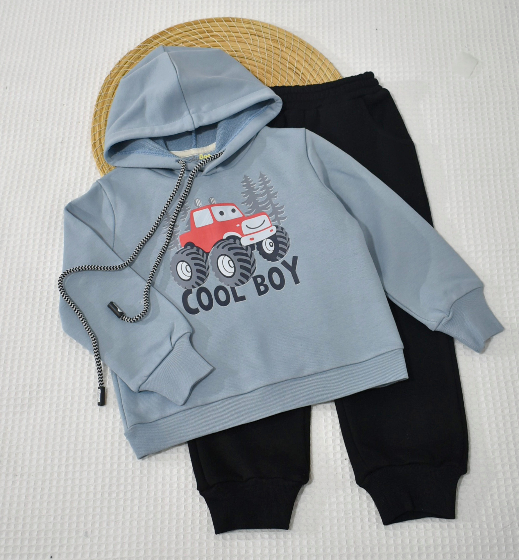 Le sweat bleu gris met en avant un camion rouge adorable façon » Monster truck » , un motif apprécié par les enfants. Le pantalon noir apporte une touche classique et pratique pour une tenue quotidienne complète.