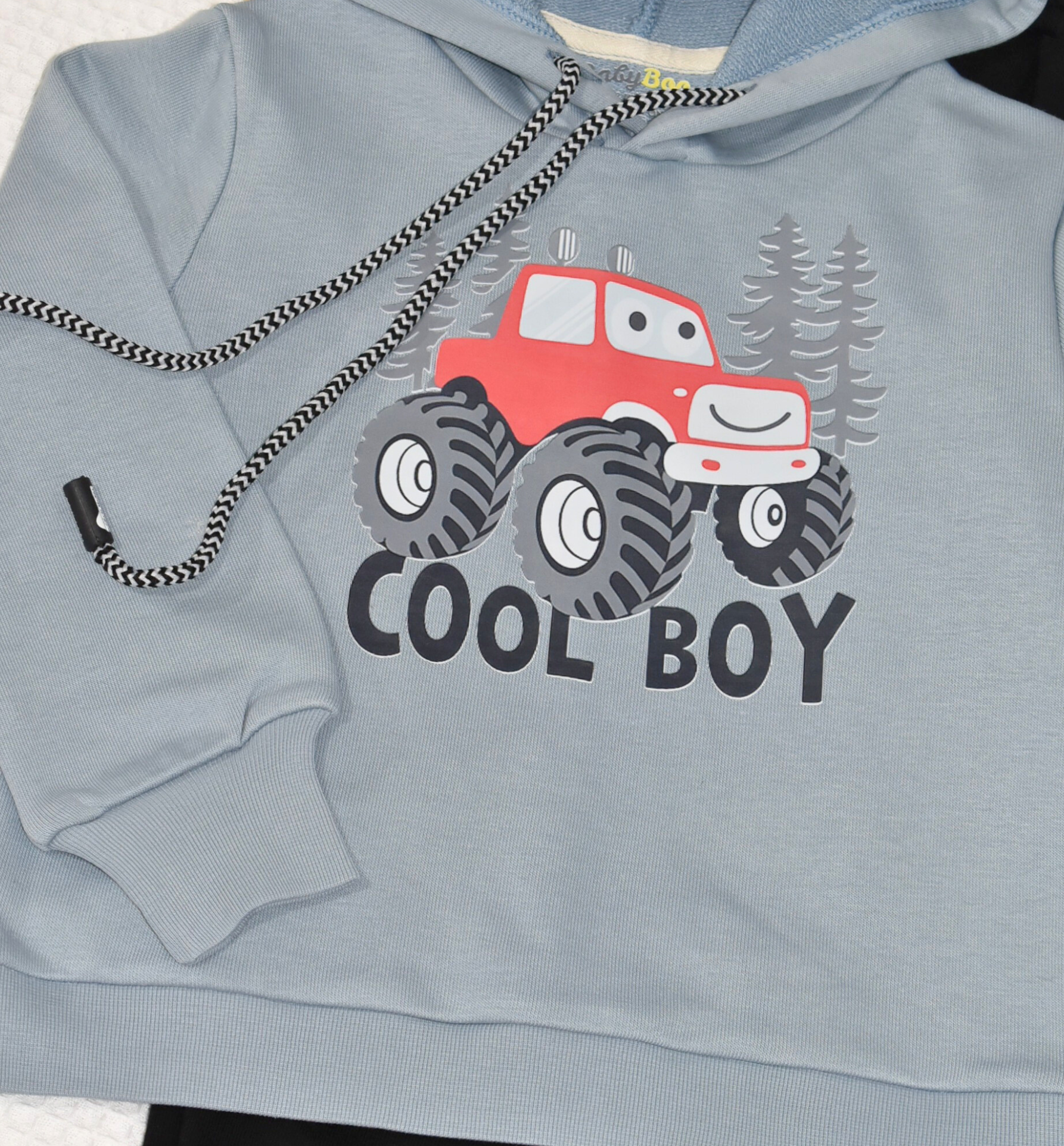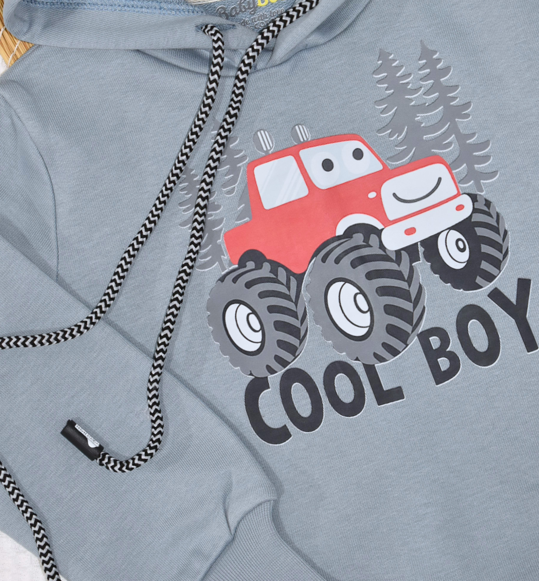 Sweat à capuche bleu gris imprimé “COOL BOY”