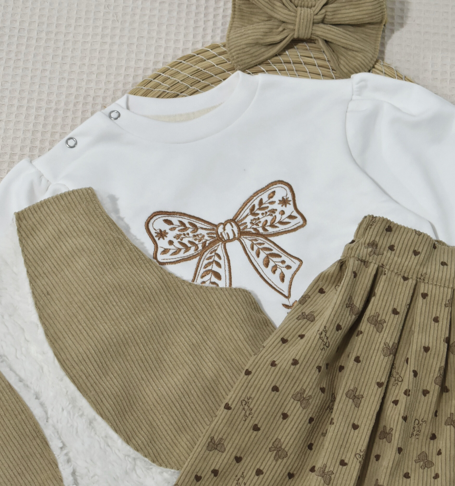 Ensemble fille 4 pièces – Jupe & pull coton brodé Papillon