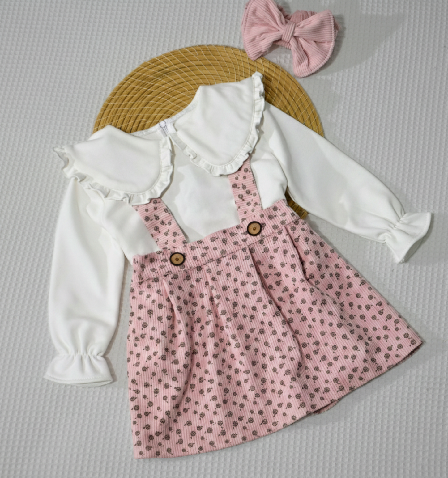 Ensemble Fille Spécial Aïd – Jupe Salopette & Pull Col Claudine | Babyboo