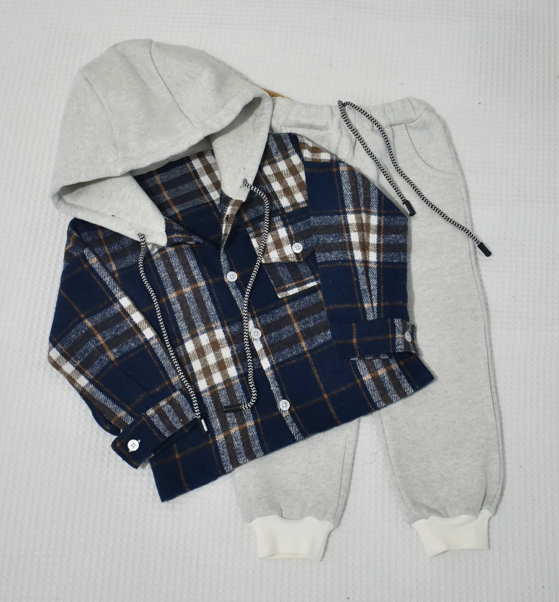 Offrez à votre garçon un look chaud, tendance et pratique avec ce superbe ensemble 2 pièces composé d’une chemise à carreaux bleu marine et d’un pantalon jogging gris ultra-doux.