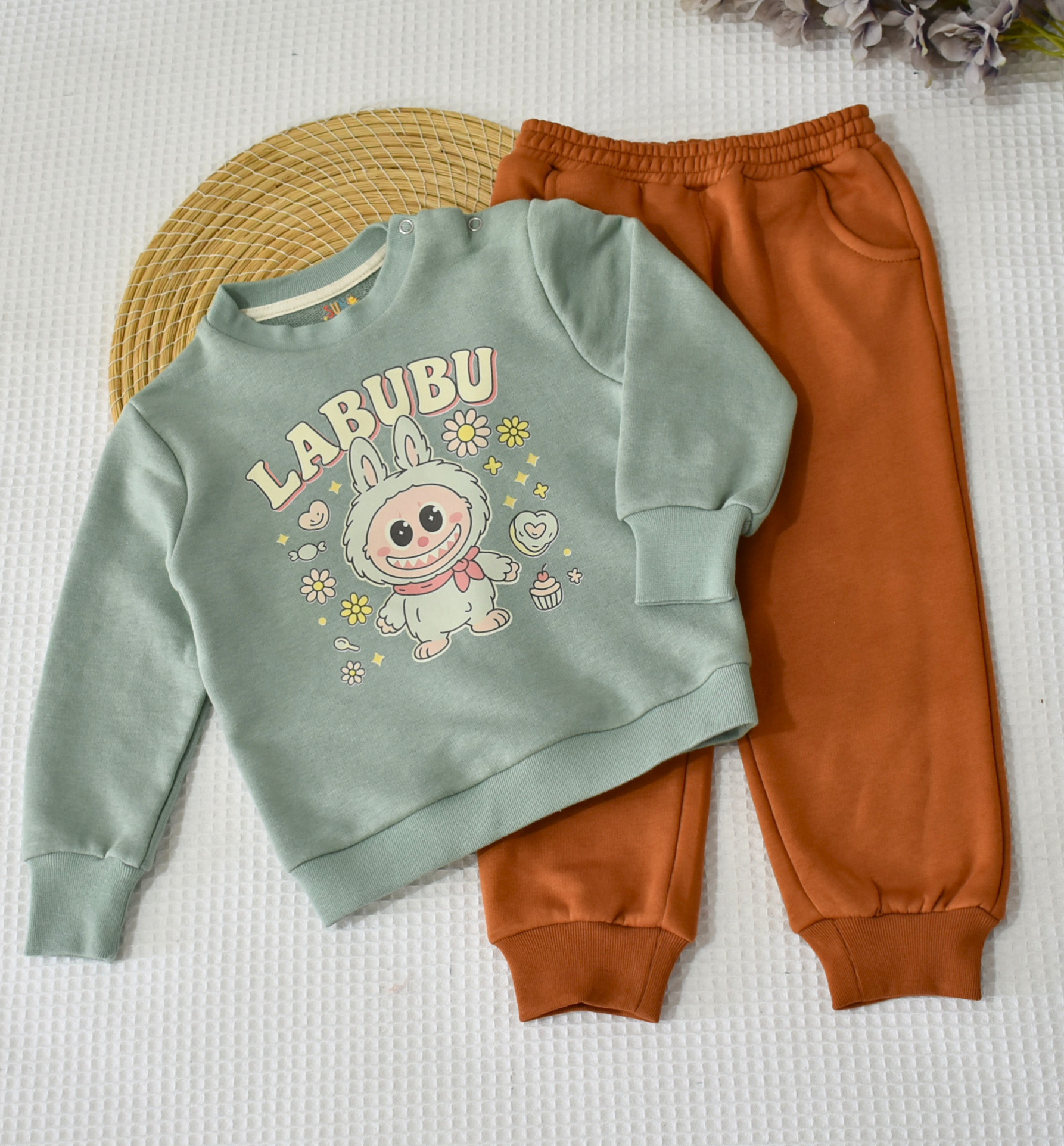 Découvrez notre ensemble jogging enfant “Bunny Flowers vert & rouille” 🐰🌼