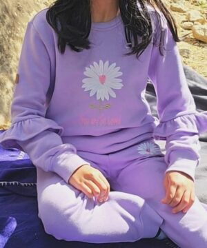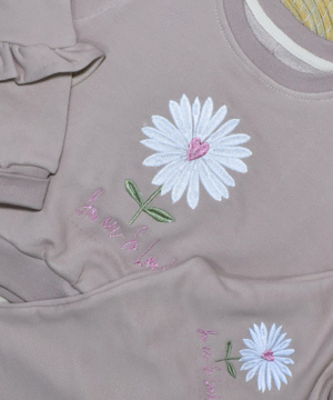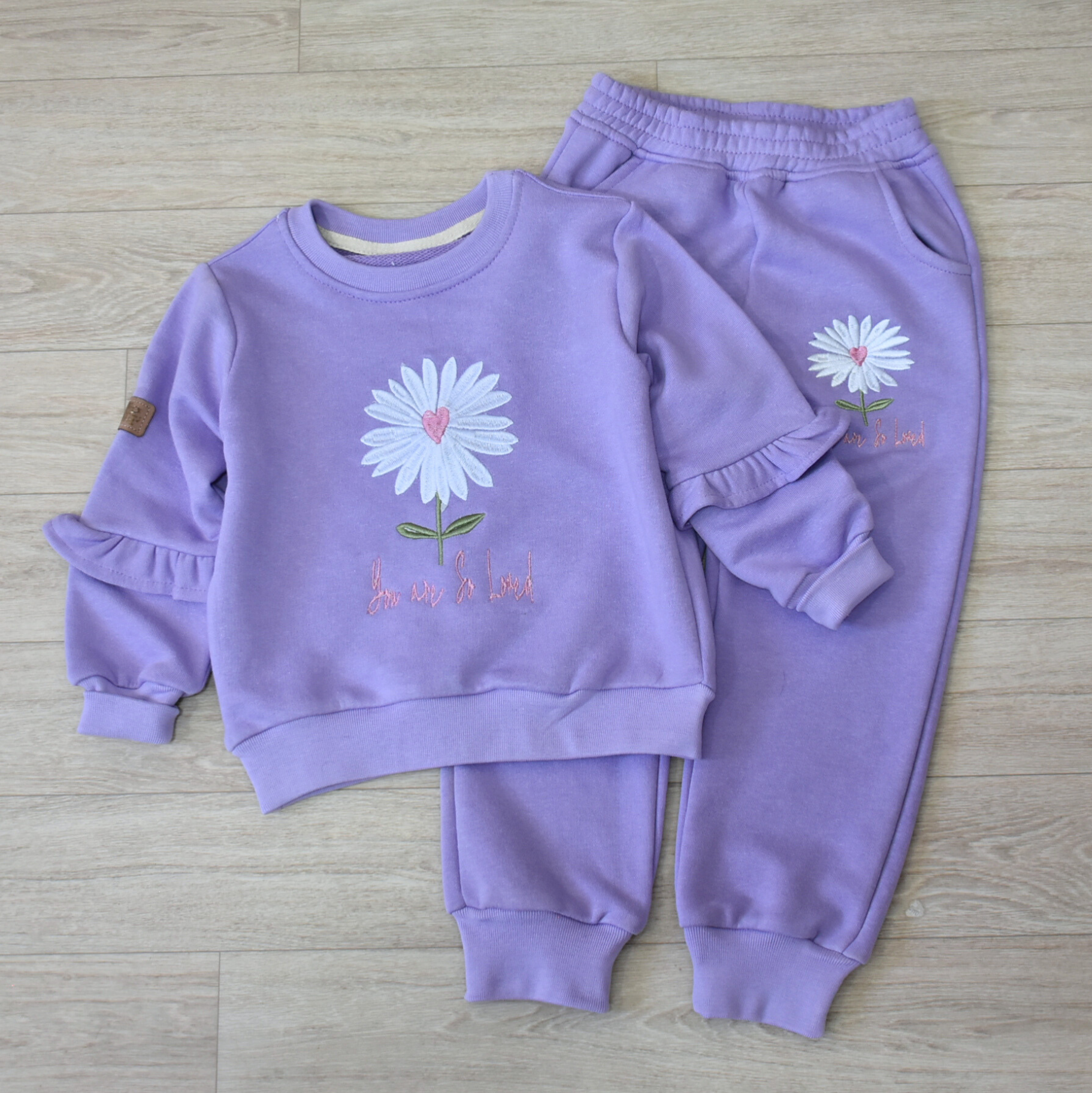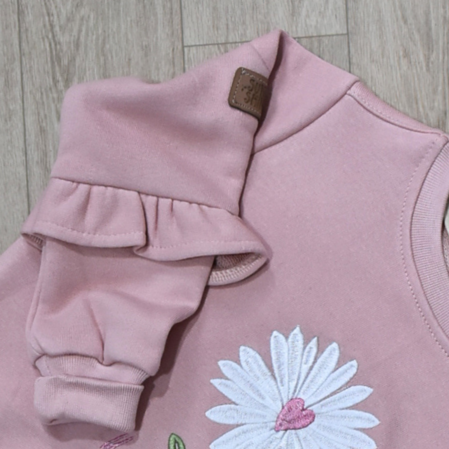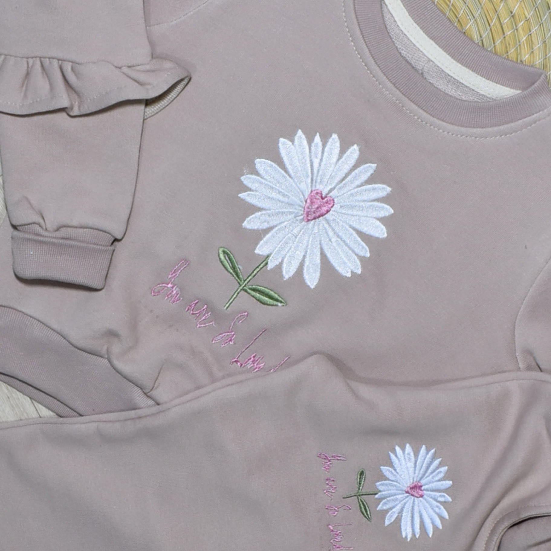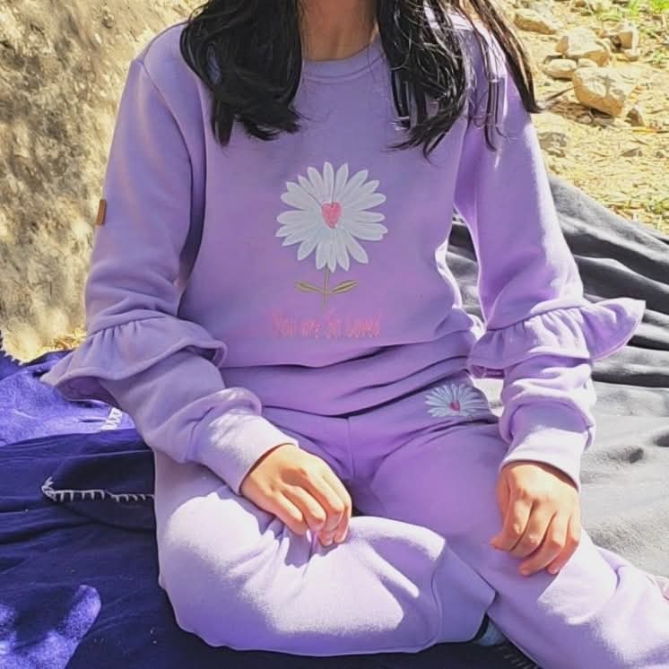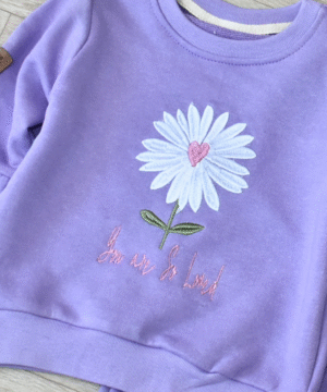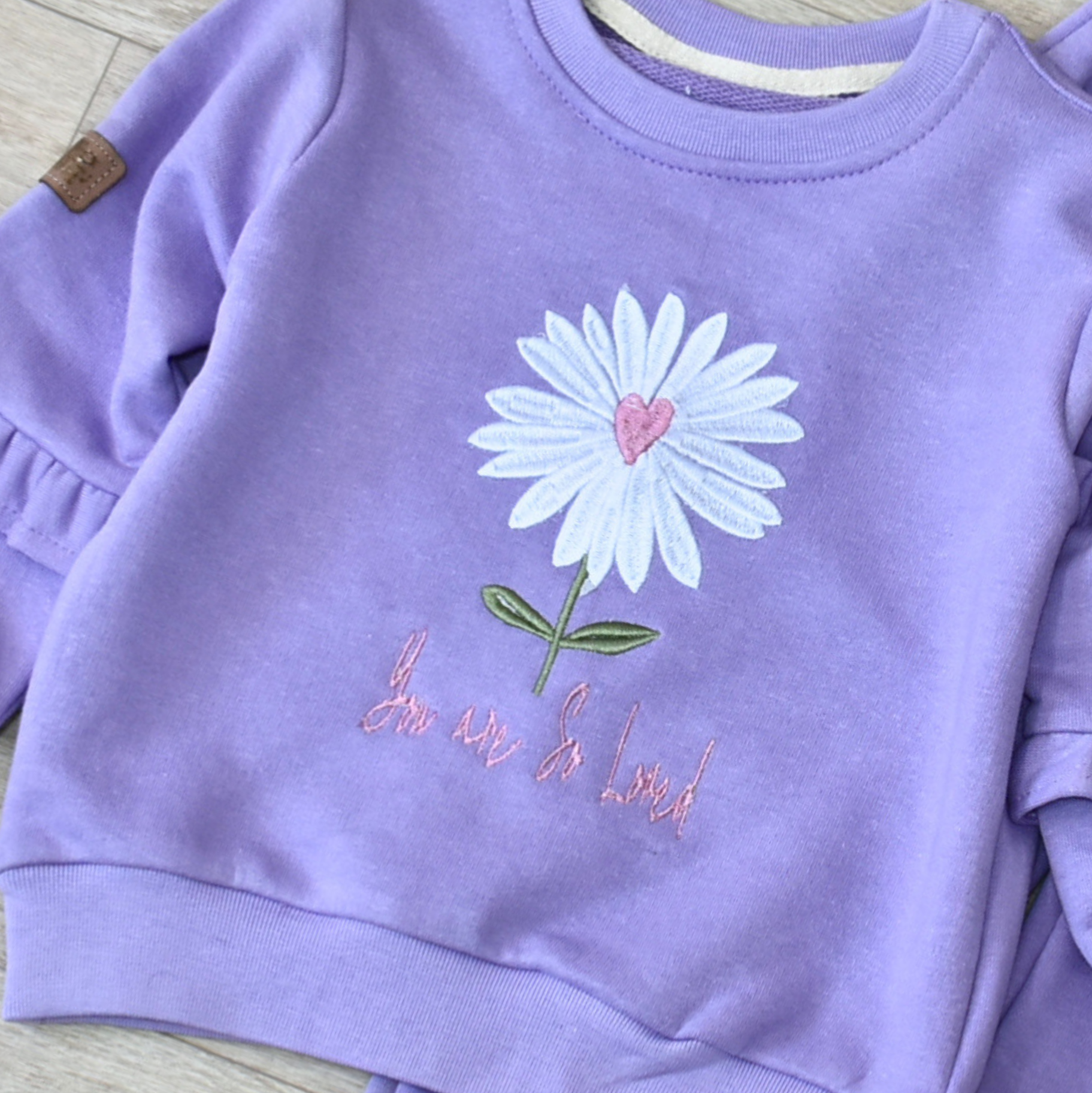 - Haut à manches longues avec broderie marguerite et inscription “You are so loved”.