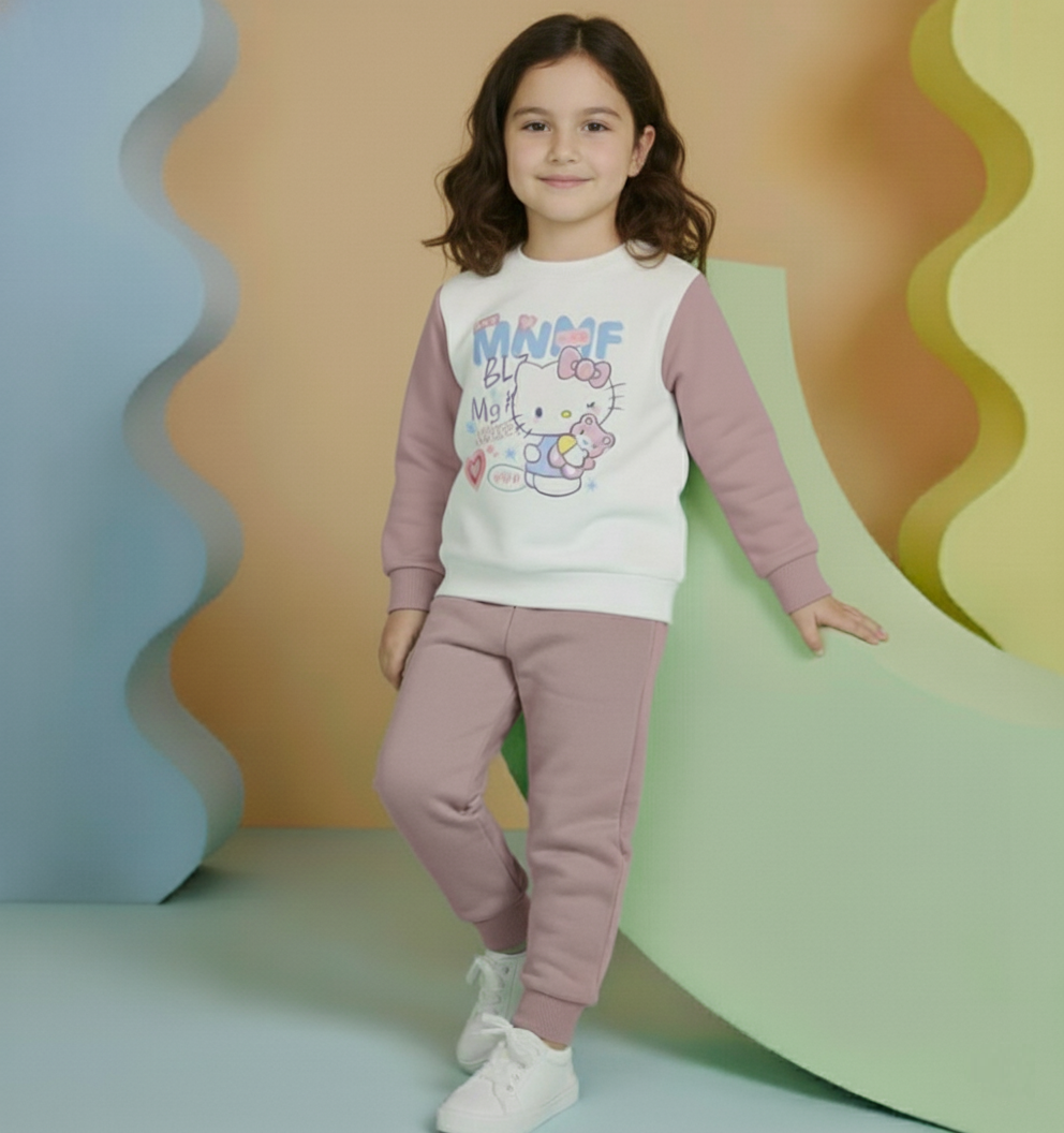 Découvrez notre ensemble jogging fille “Kitty Pastel rose poudré” 🤍💗