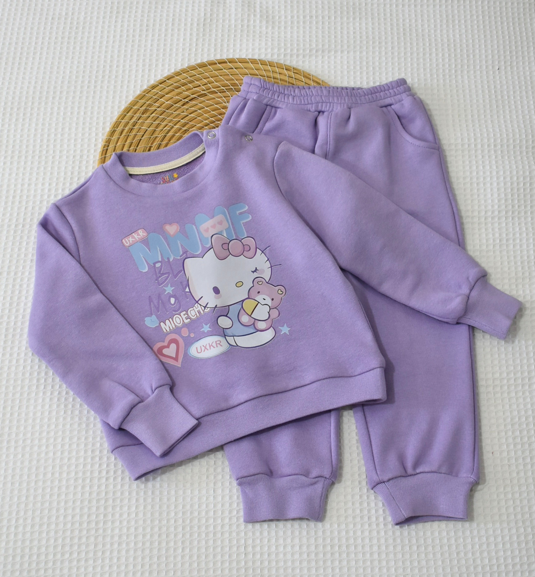 Cet ensemble jogging est confectionné en molleton 100% coton peigné compact non gratté, un tissu respirant et agréable sur la peau, idéal pour les enfants.