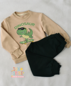 Découvrez notre ensemble jogging garçon “Dino Skater beige & vert foncé” 🦖🛹💚