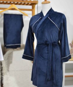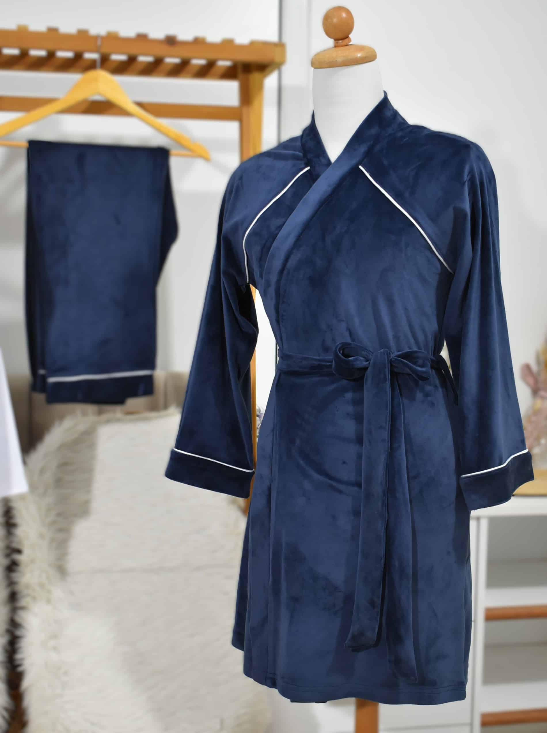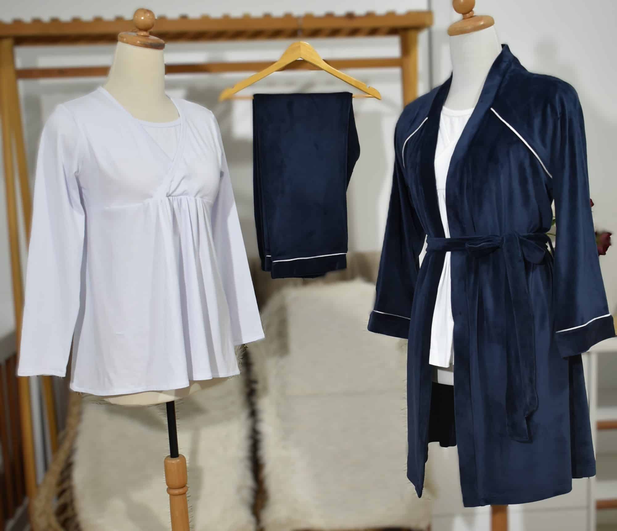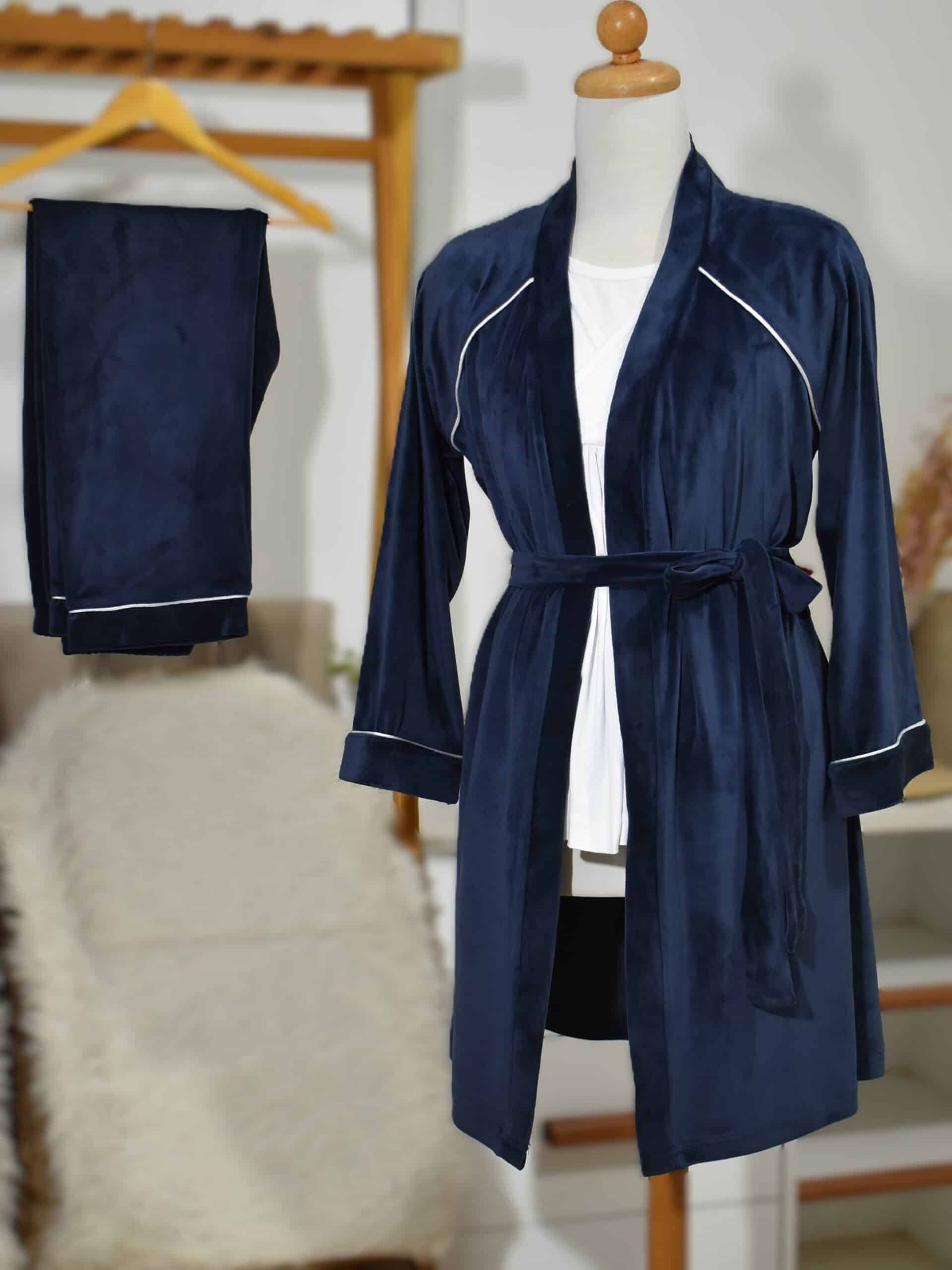 Pyjama femme en velours doux, conçu pour les mamans allaitantes, avec ouverture d’allaitement discrète.