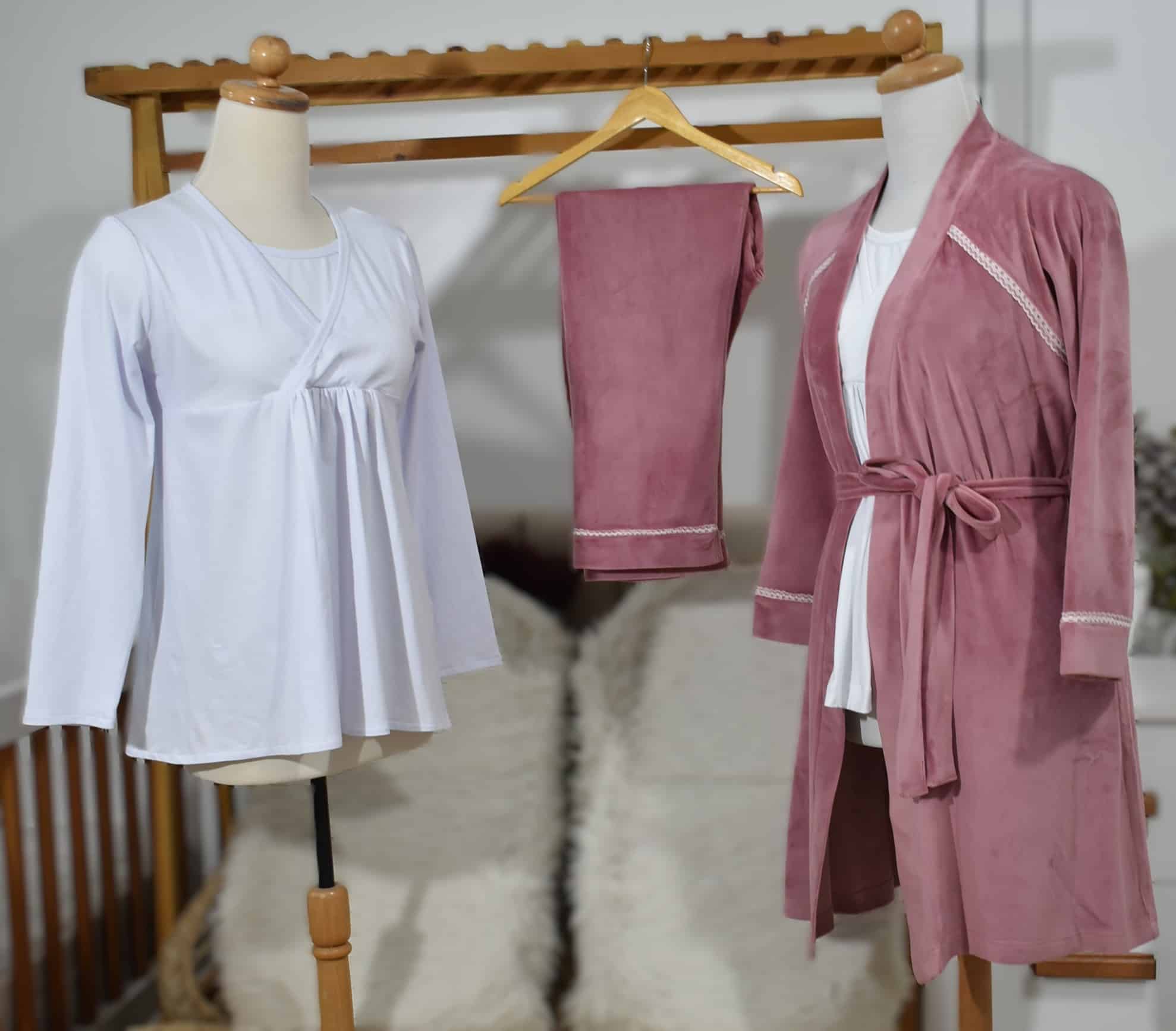 Pyjama femme en velours doux, conçu pour les mamans allaitantes, avec ouverture d’allaitement discrète.