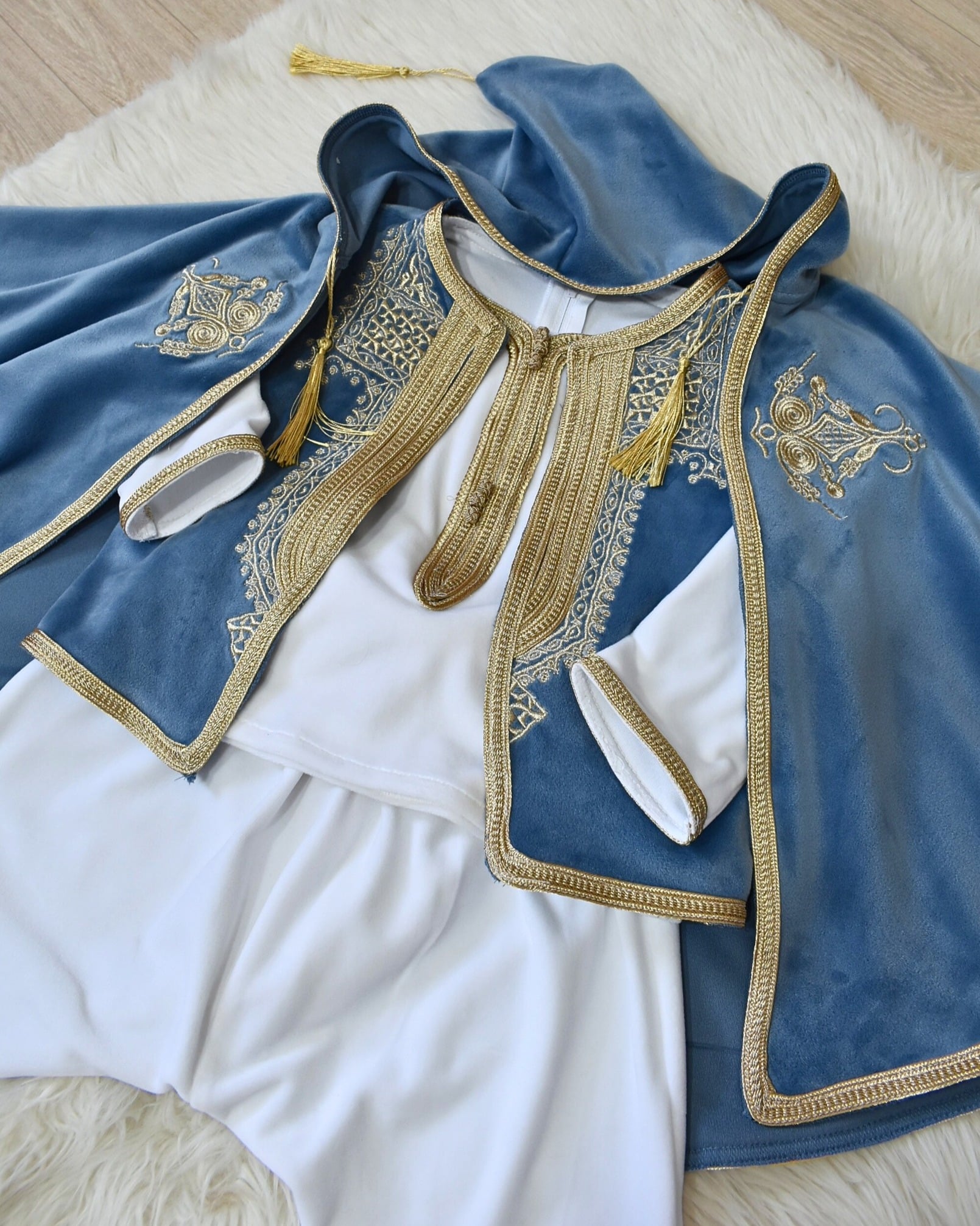 velours douxDétails raffinés : broderies dorées, galons décoratifs, pompons élégants